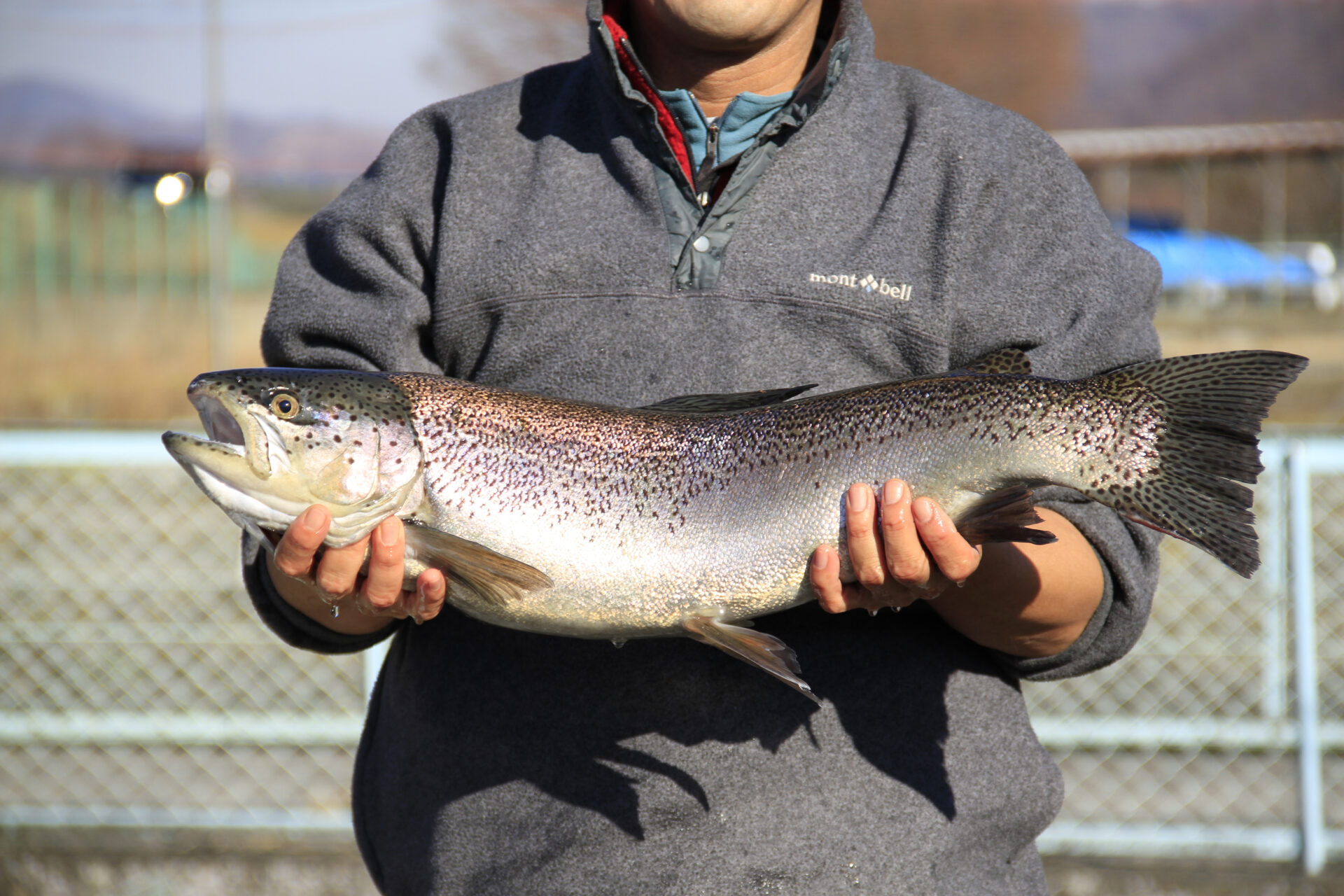 試験場で丹精込めて育てられた稚魚は、県内の養魚場で2~3年かけて約2kg、全長65cmほどに成長して出荷されます。